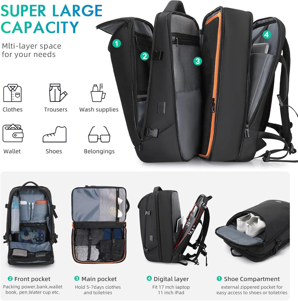 This versatile solution combines a 50L expandable capacity with professional aesthetics, allowing you to bypass baggage fees and airport delays while keeping your electronics protected and your silhouette sleek.